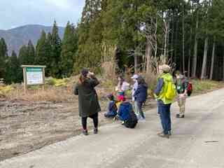 ハイキングは、班ごとに地元の方が講師でついてくださっています。 子どもたちは、ひと休みのタイミングで、一生懸命メモをとっています。