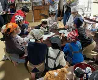 6班の中の屋さんにお邪魔しています。 ここでも五平餅づくりが行われていました。 宿ごとに作り方も味も違うようです。