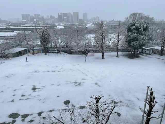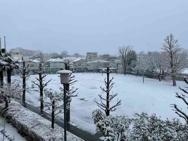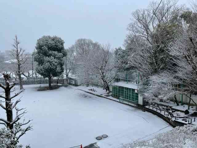 天気予報でも雪とは言っていましたが、まさかこれほど降るとは思いませんでした。明日が始業式だったら、ちょっと大変でした。 用務主事さんが、北側の門のあたりの雪を掃いてくれています。