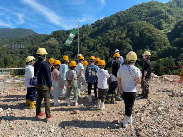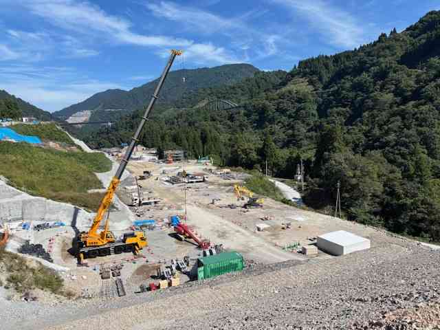 ダムを建設するためには、道路を整備したり、トンネルを掘ったりする必要があるそうです。掘削した際に出てきた石は、ちょうど都合よくコンクリートの材料として利用できるのだとか。そのため、一度この場所に集めて同じ場所でコンクリートをつくり、輸送などのコストを削減しているそうです。 まさに“石を掘って石を使う”、一石二鳥の工夫です。