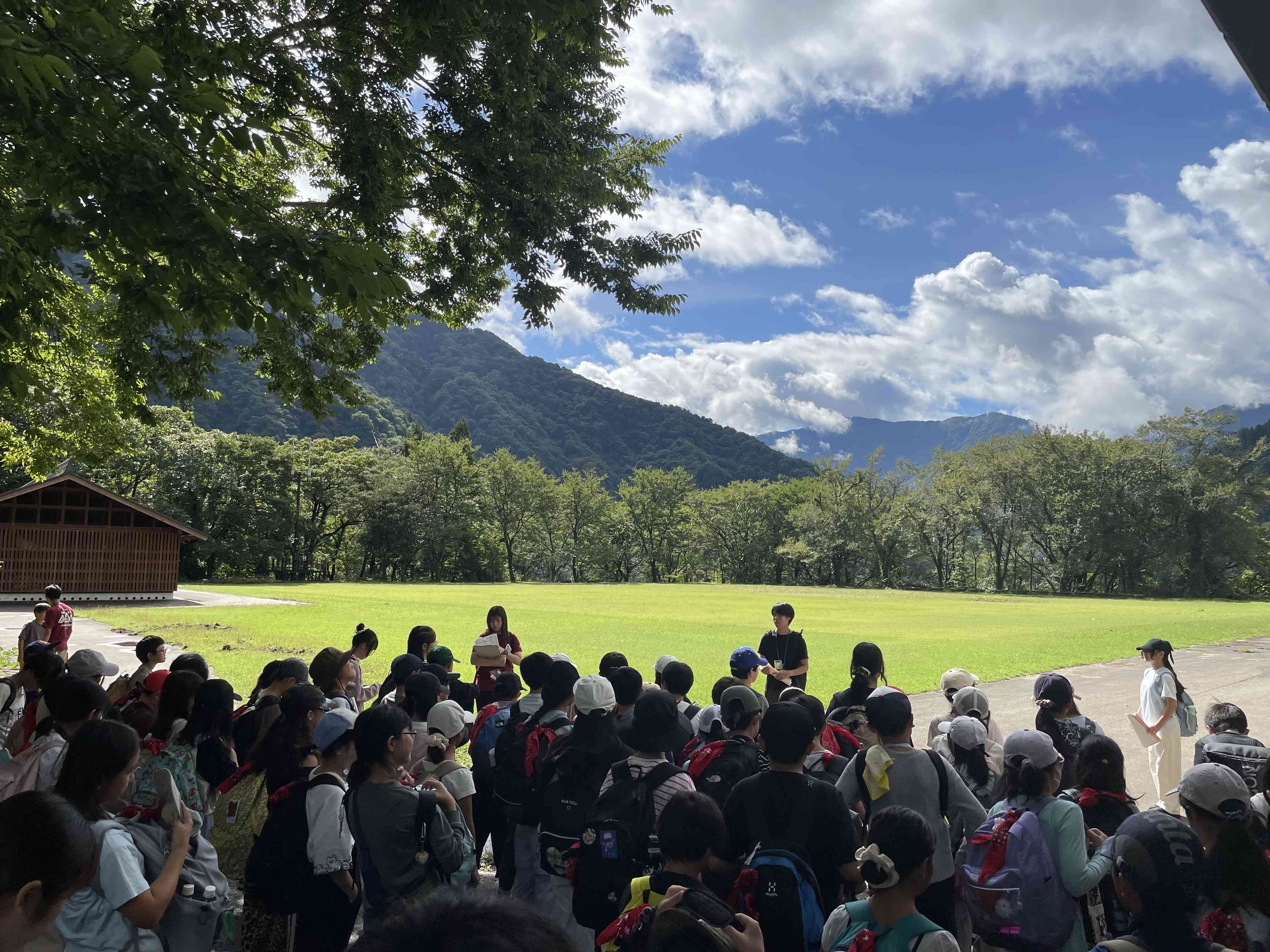 今日の見学地、相倉合掌造り集落に到着しました。 班に別れて集落を散策します。 天気は晴れて、セカンドスクール中一番の暑さになりました。